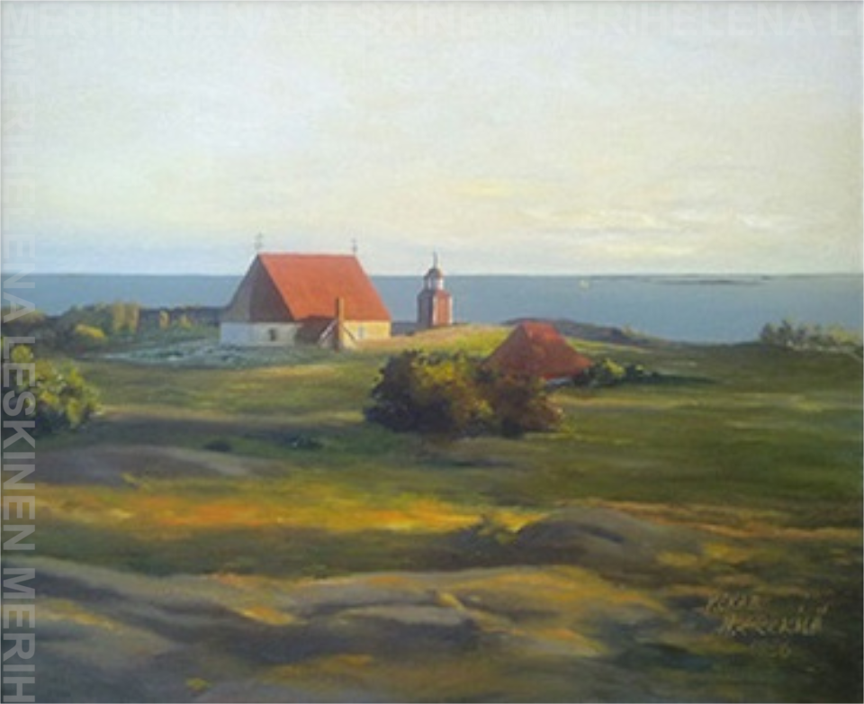Kökarin kirkko, öljy 1984, 50cm x 60cm