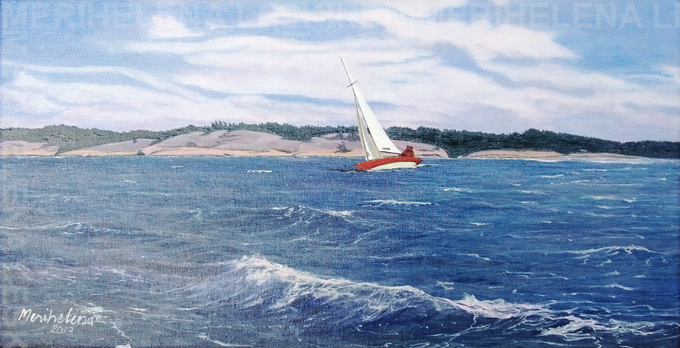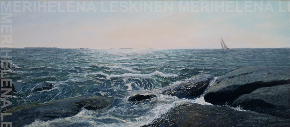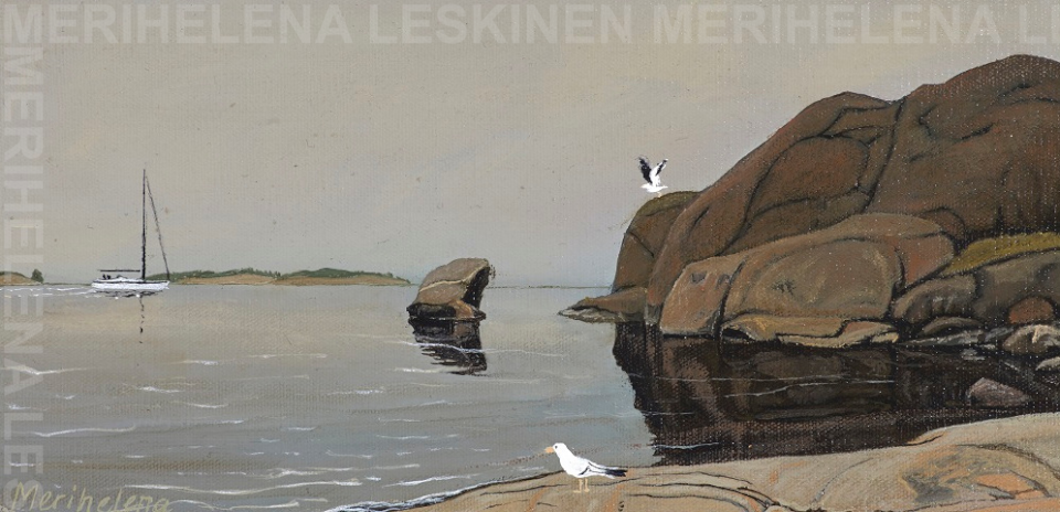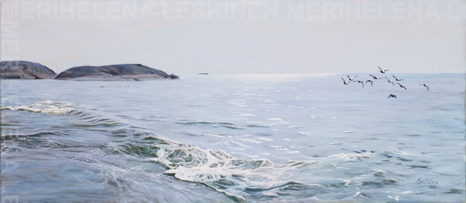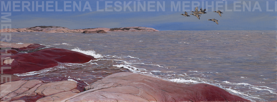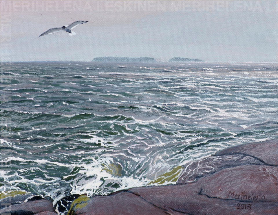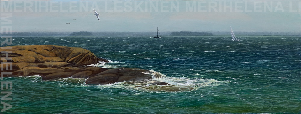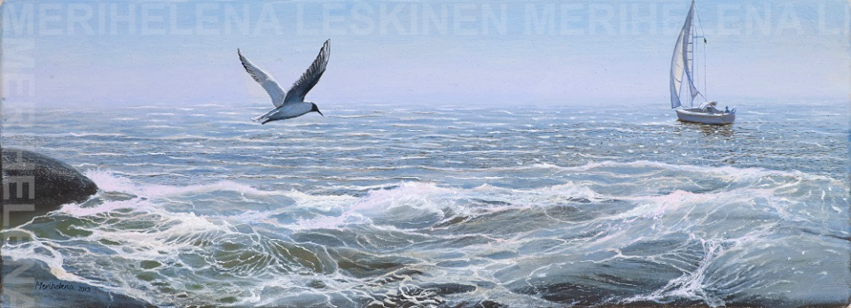 Naurulokki, Linlandet, öljy 2013, 20 x 60cm